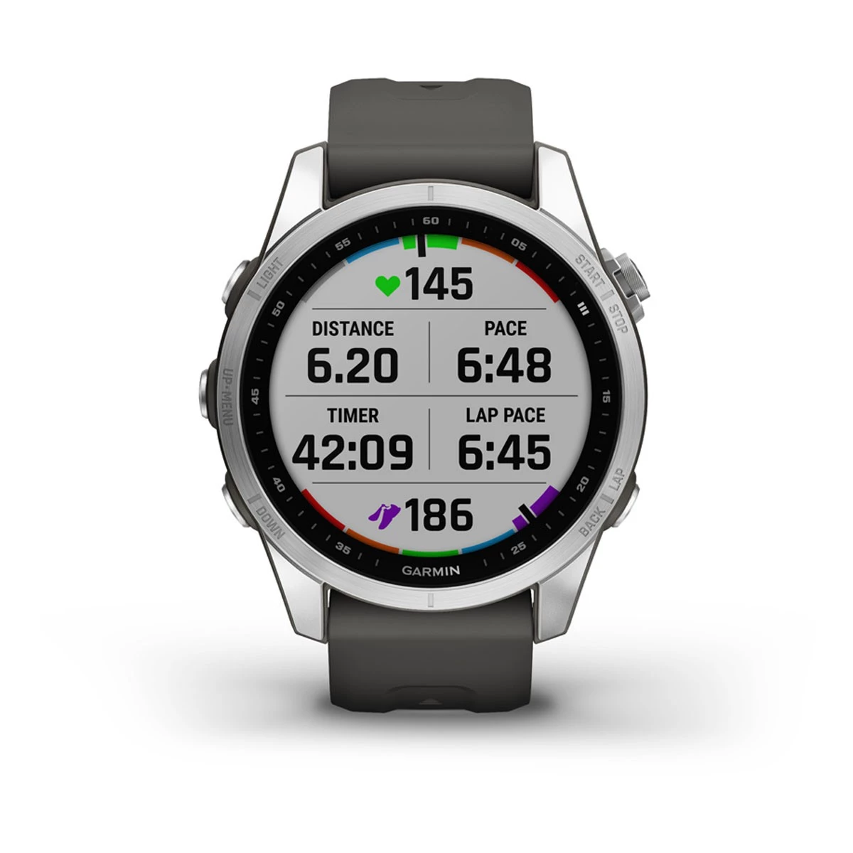 Styled for smaller-sized wrists, the watch’s fresh new design adds a new touchscreen interface to access selections along with the watch’s trusted button controls. Gain performance insights and metrics that help you manage your exertion and build stamina.